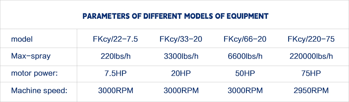 Spray ability: 220 lbs/h-22000lbs/h(100-10000kg/h)
